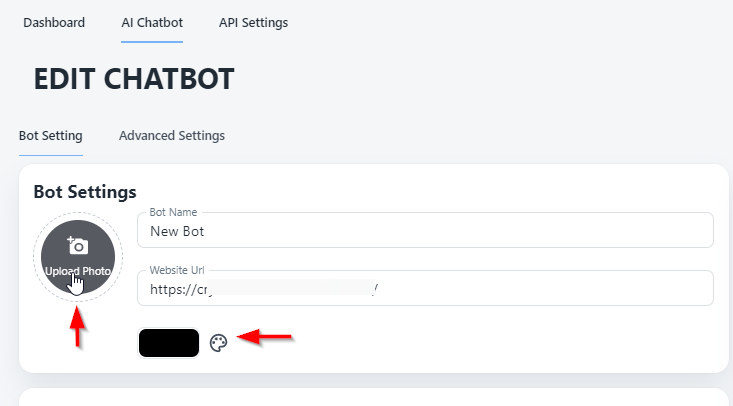 - Navigate to "Bot Settings" where you can manage the chatbot's appearance.