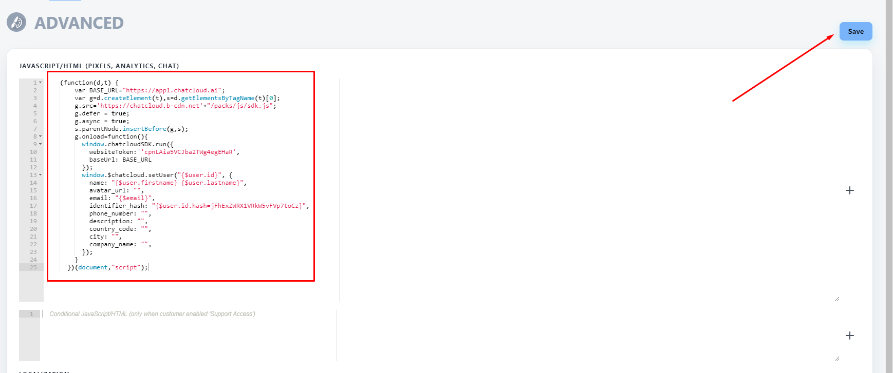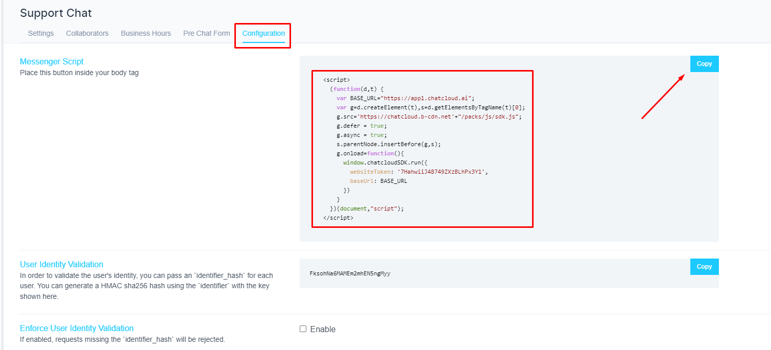Under the ‘Configuration’ tab, you will have the script code. Please, copy that code.