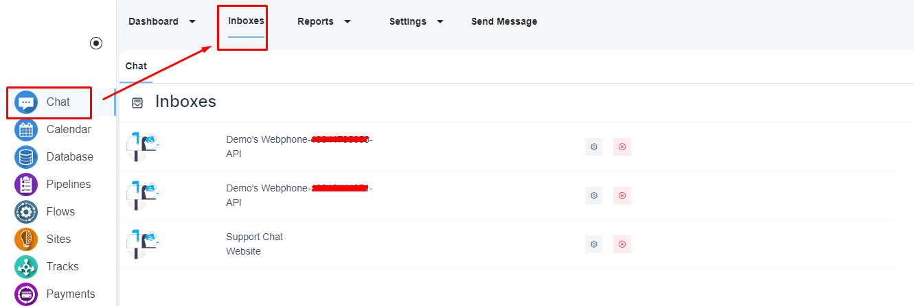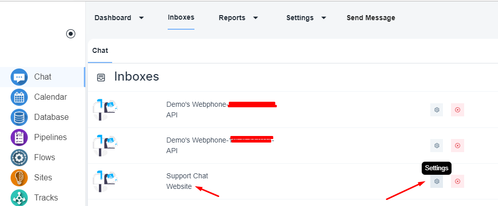 If you have an existing Website Widget inbox, then please, navigate to the ‘Chat’ icon on the left menu bar. Once the page is loaded, click on the ’Inbox’ menu on the top menu bar.