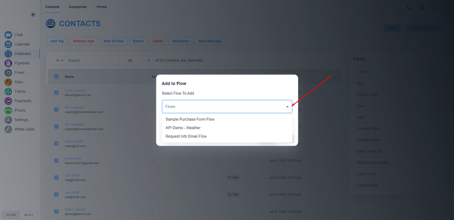 After selecting all contacts, click on the ‘Add To Flow’ button to add all contacts to a flow
