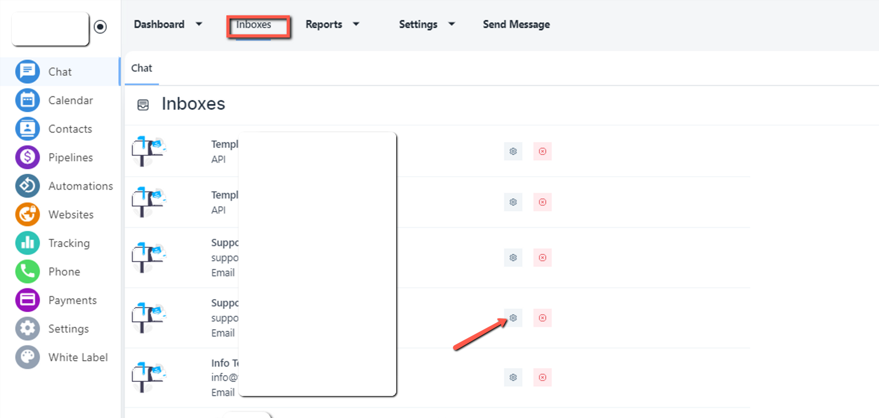 - Then click on the Chat tab from the left side, Click on the Inbox tab from your top address bar and then click on the specific email inbox setting icon.
