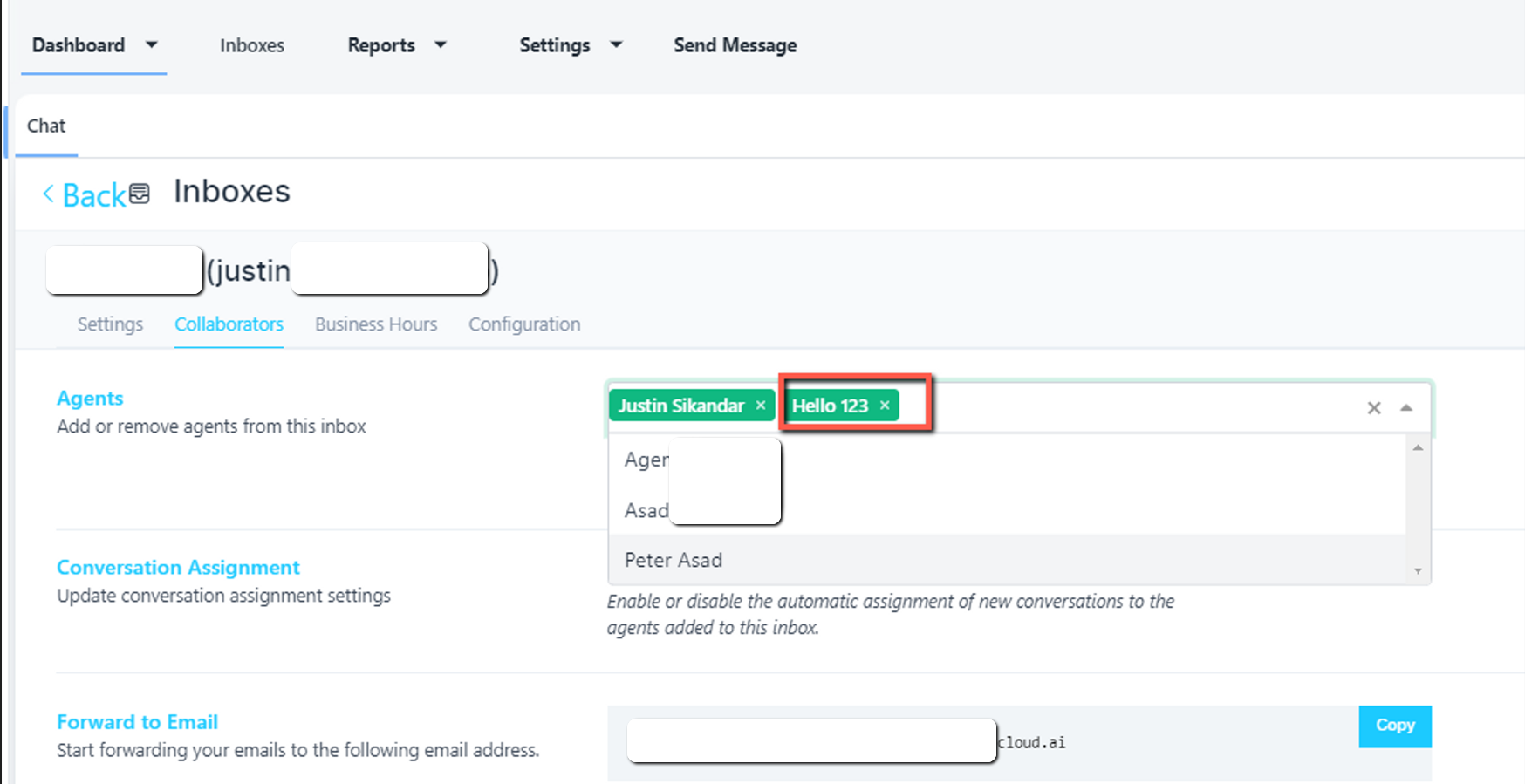 - New window will open, Click on the agent dropdown bar and select your team user as a collaborator where you can add or remove your team members.