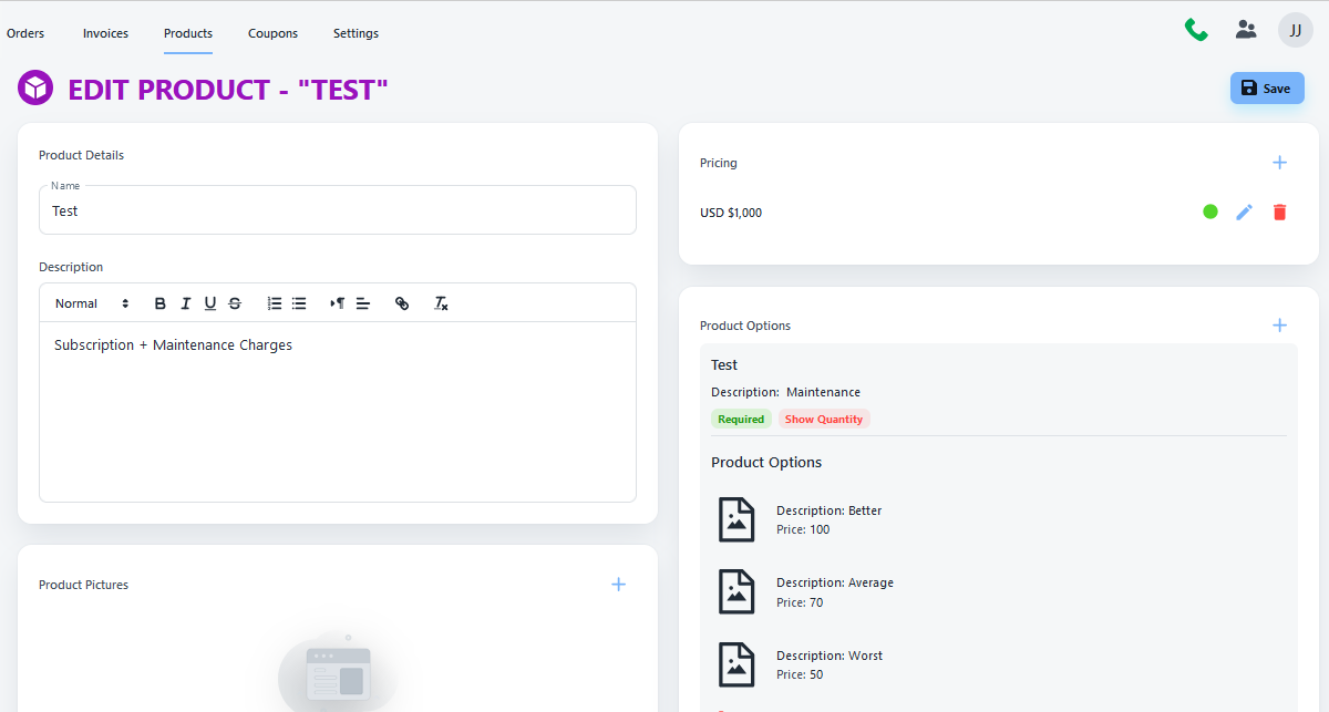 - Product window is open for you, Add the complete detail of your product and save.