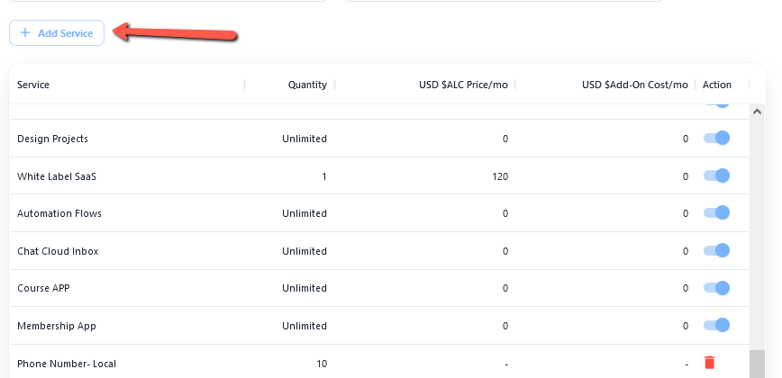 - Now click on Add Service button and select the product detail here.