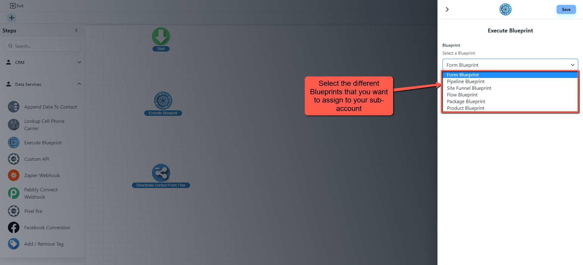 Select from the different blueprint that you want to assign to your sub-account