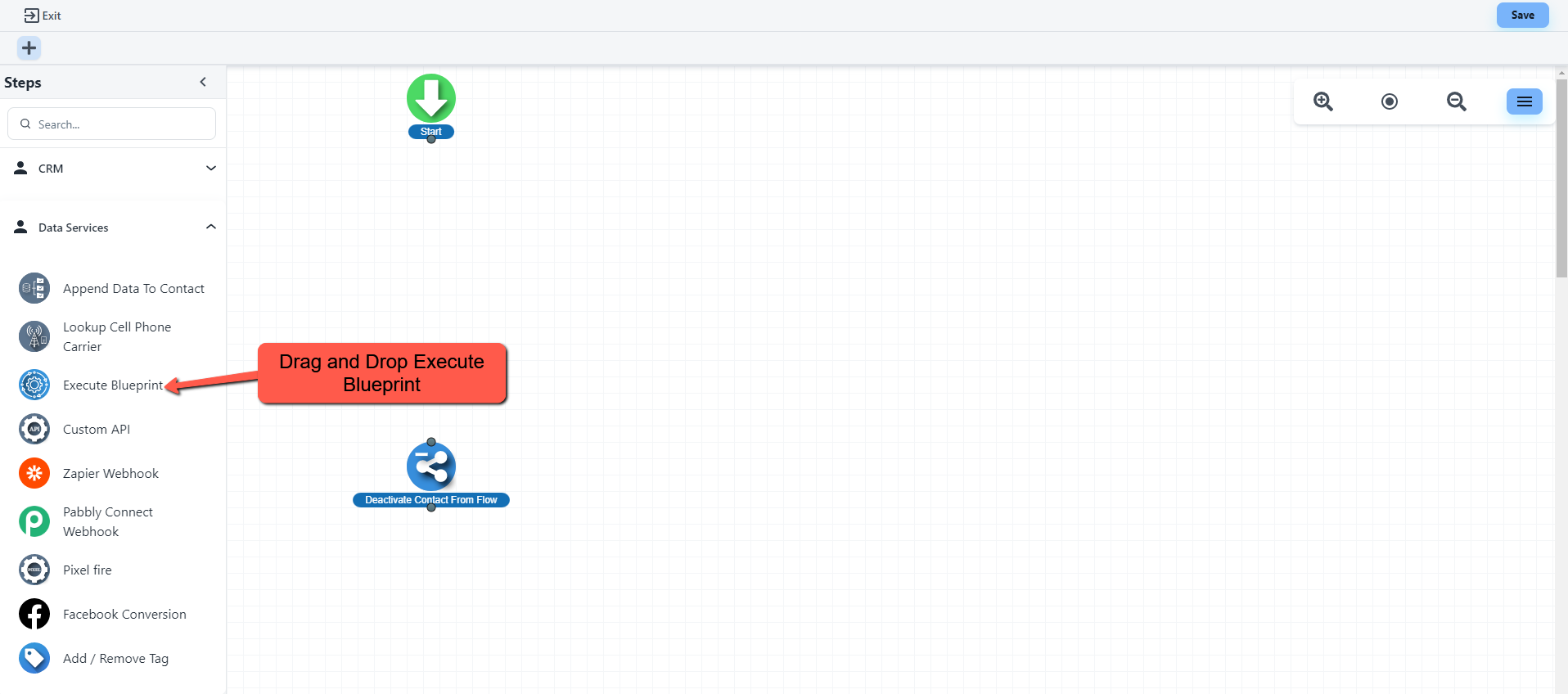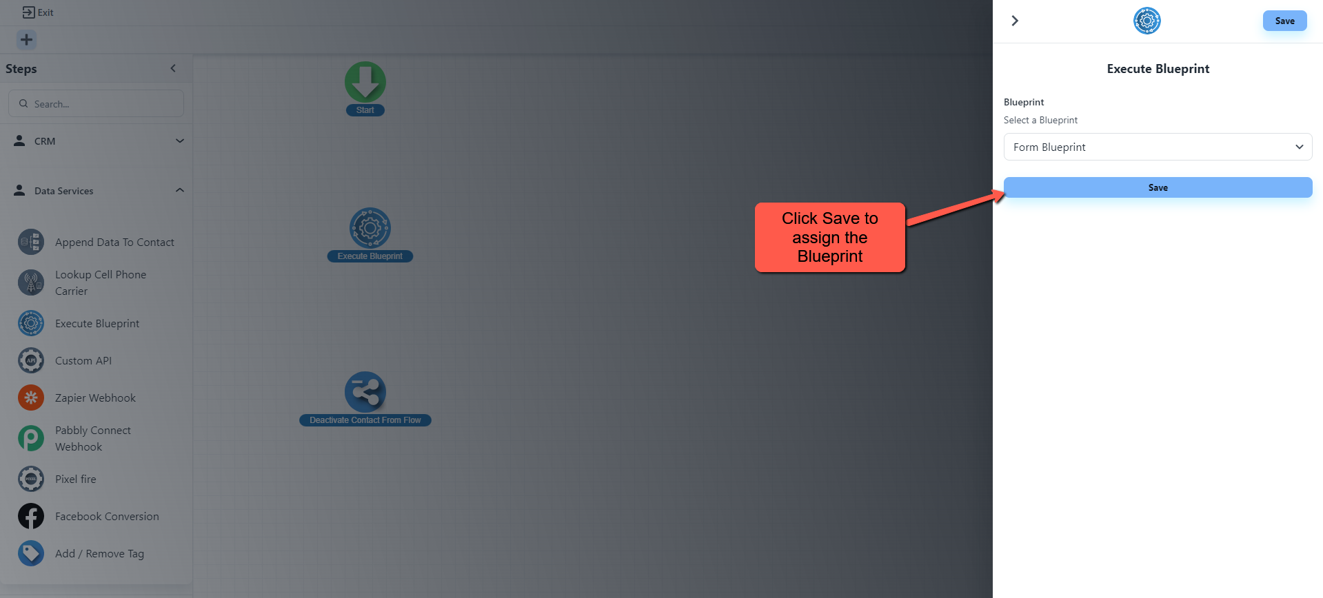 Select Execute Blueprint Inside the Flow Builder