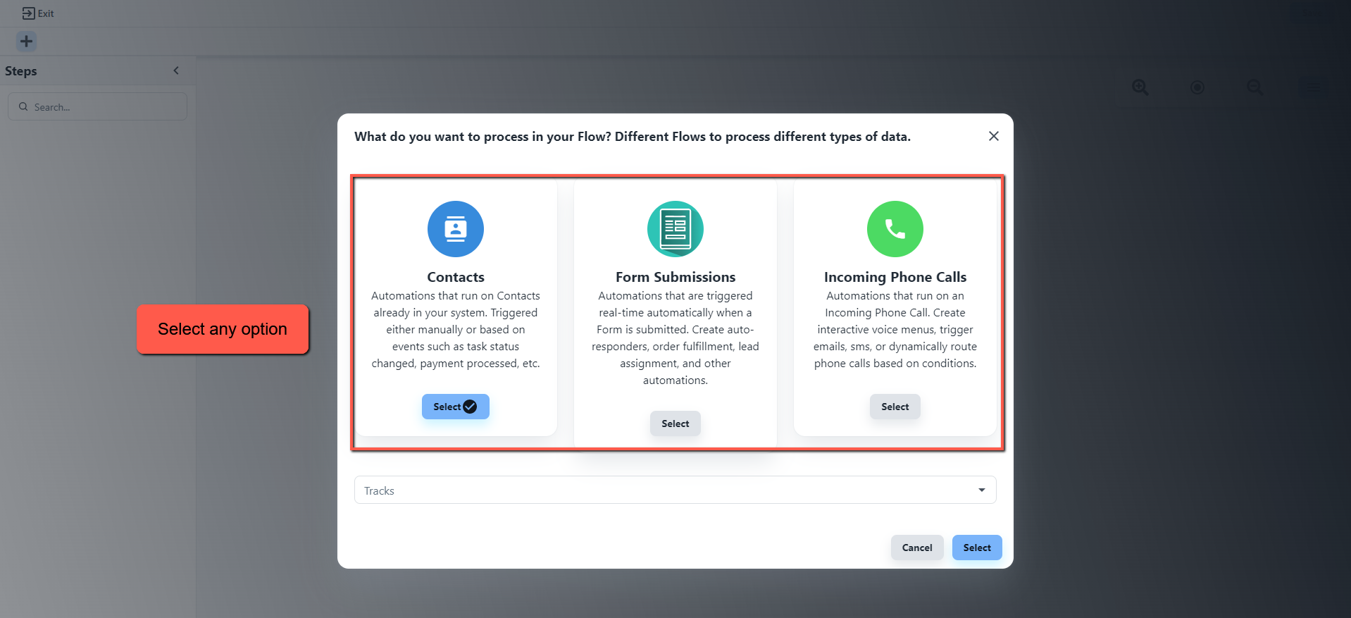 Select the Type of Flow that you want to Process