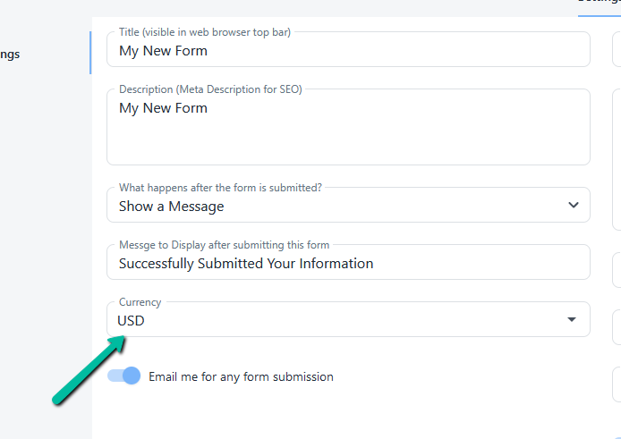 - When you click on your Form Name appearing a new window, click on the Setting Tab.