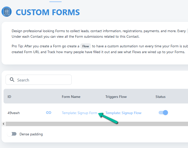 - When you click on Form you have a new option Custom Forms, In Custom Forms You have your Own Forms.