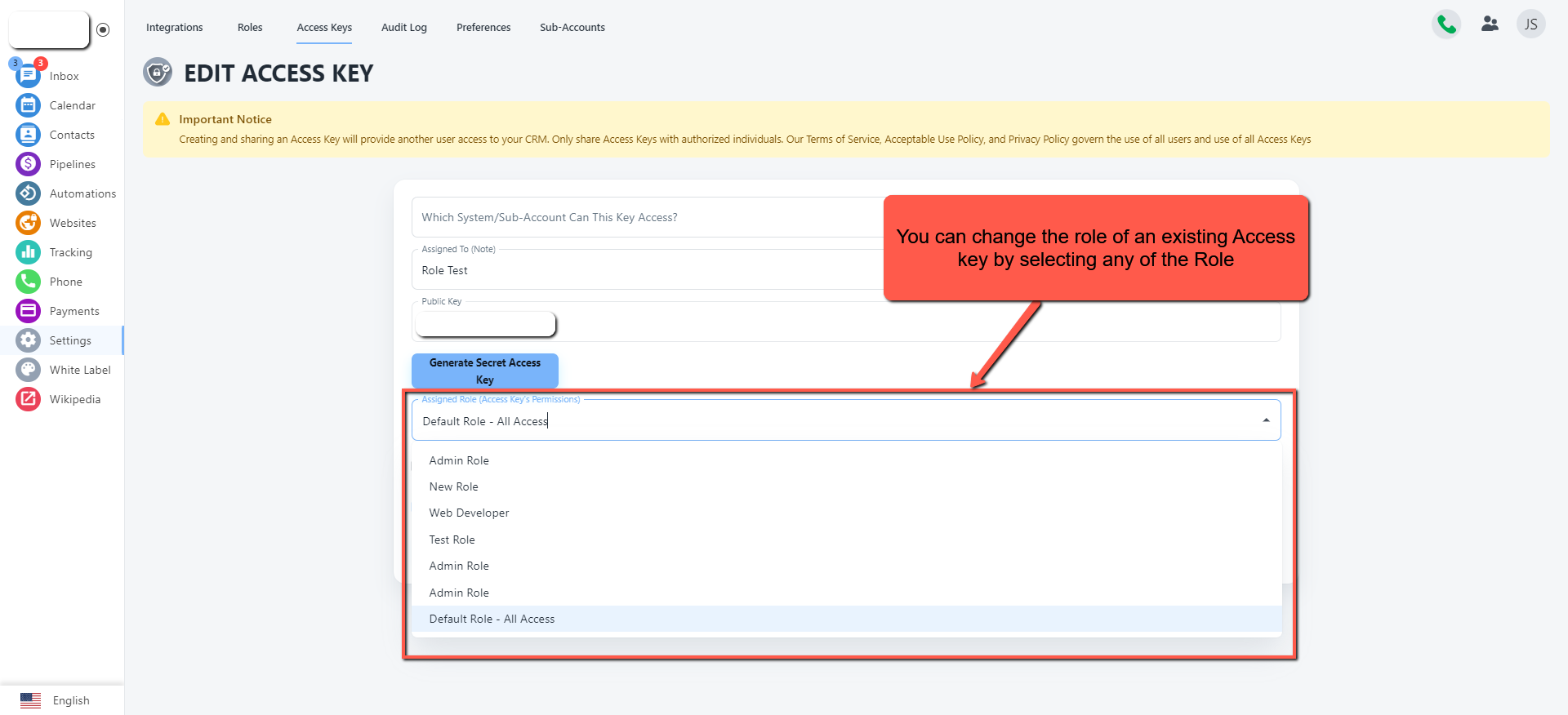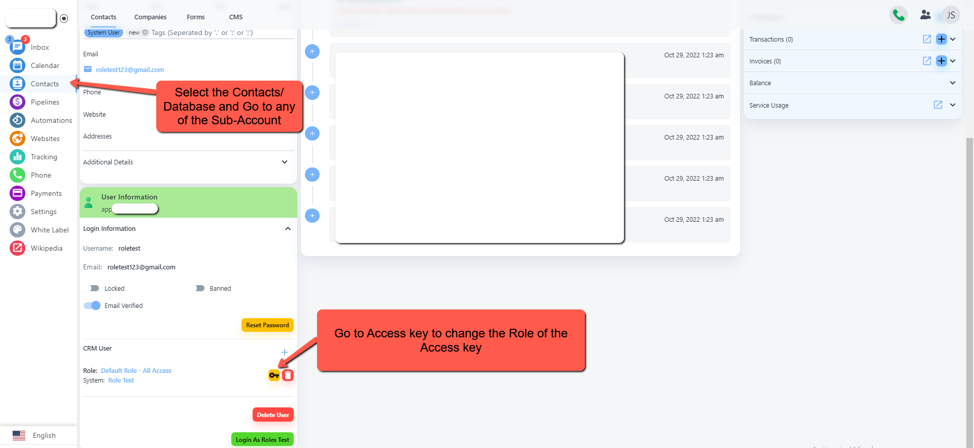 The access key is attached to every sub-account/User, you can find it in the Contact/Database section