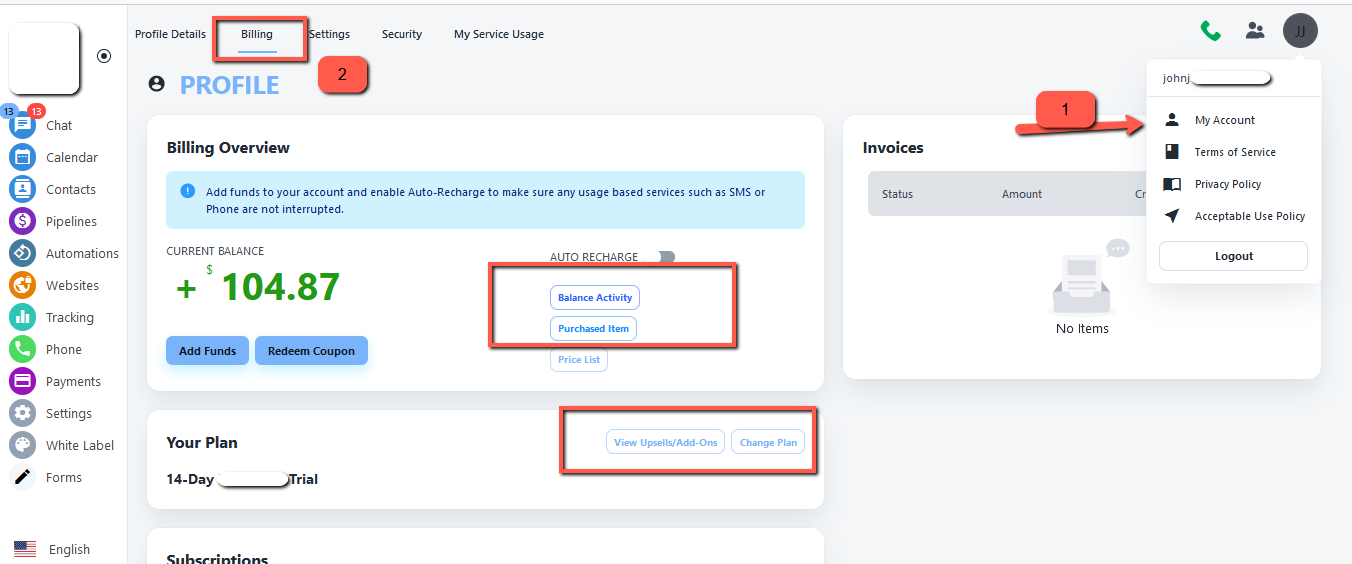 - First, you have to click on the My Account tab from the top right, And click on the Billing tab.