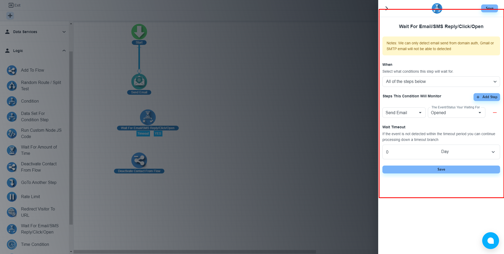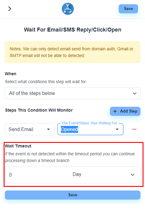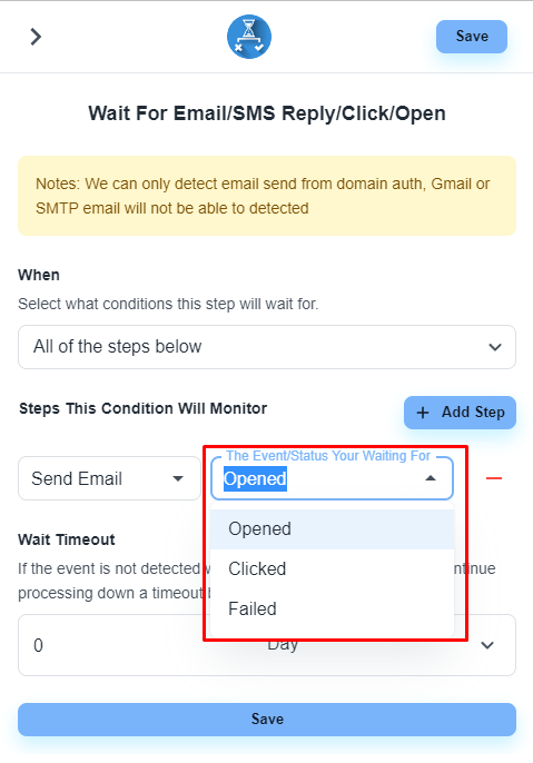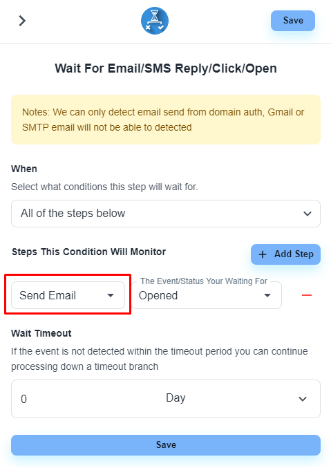 Configure the ‘Wait For Email/SMS Reply/Click/Open’ step