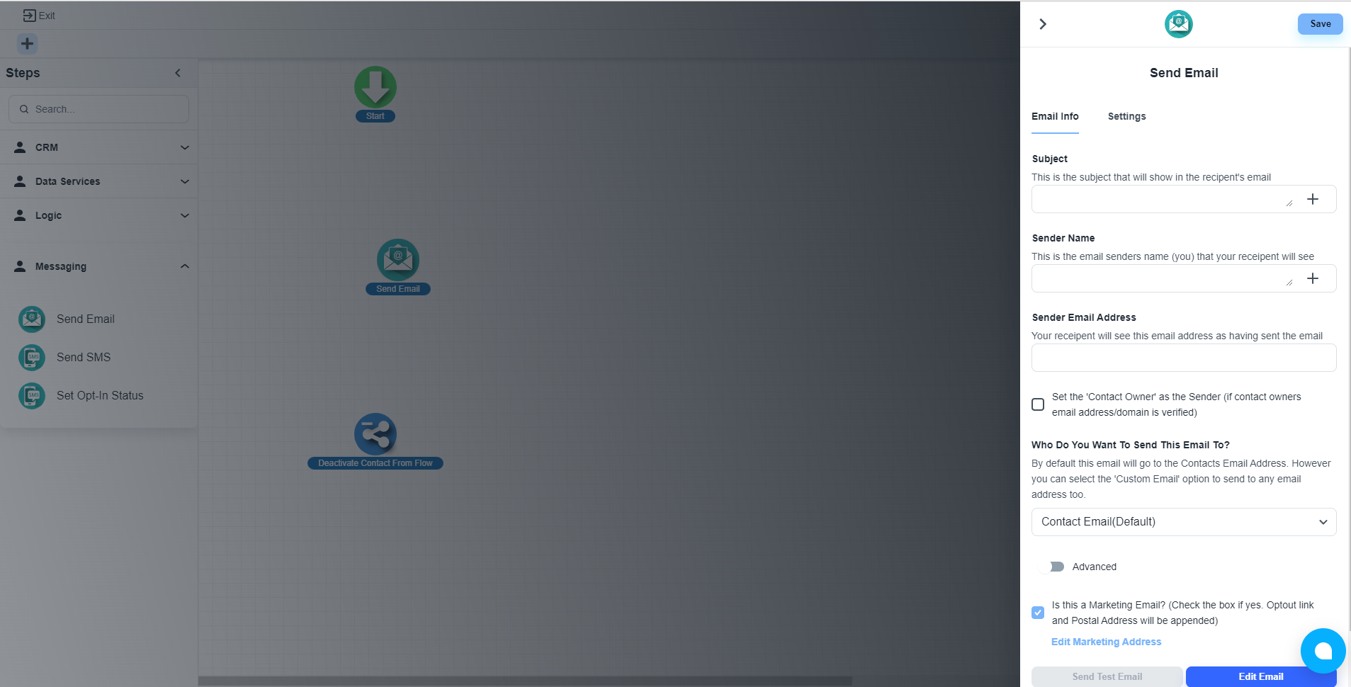 Under the ‘Messaging’ section, you will get the ‘Send Email’ step