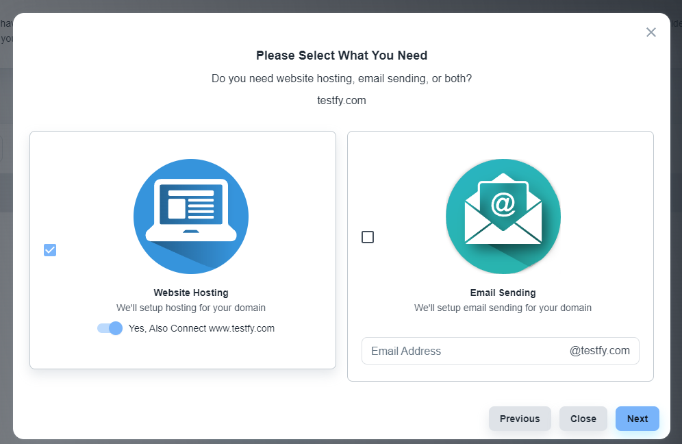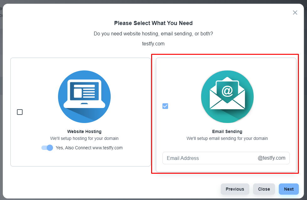 Please, uncheck the ‘Web Hosting’ and select the ‘Email sending’ option