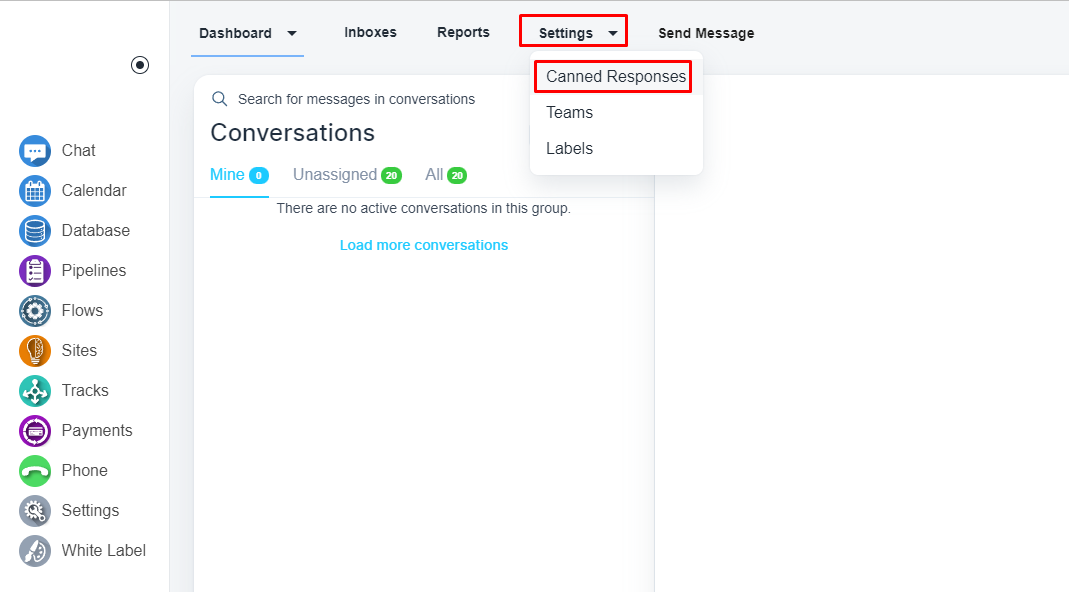 On the top menu bar, the is a ‘Setting’ menu. Please, click on the dropdown and select ‘Canned Responses’