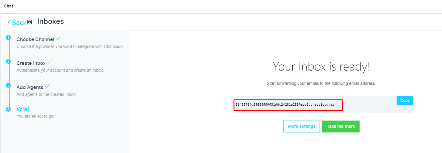 We are done. The system is ready to send emails, and the system will also provide you with a forwarding email address. You can use this email address to receive inbound emails.