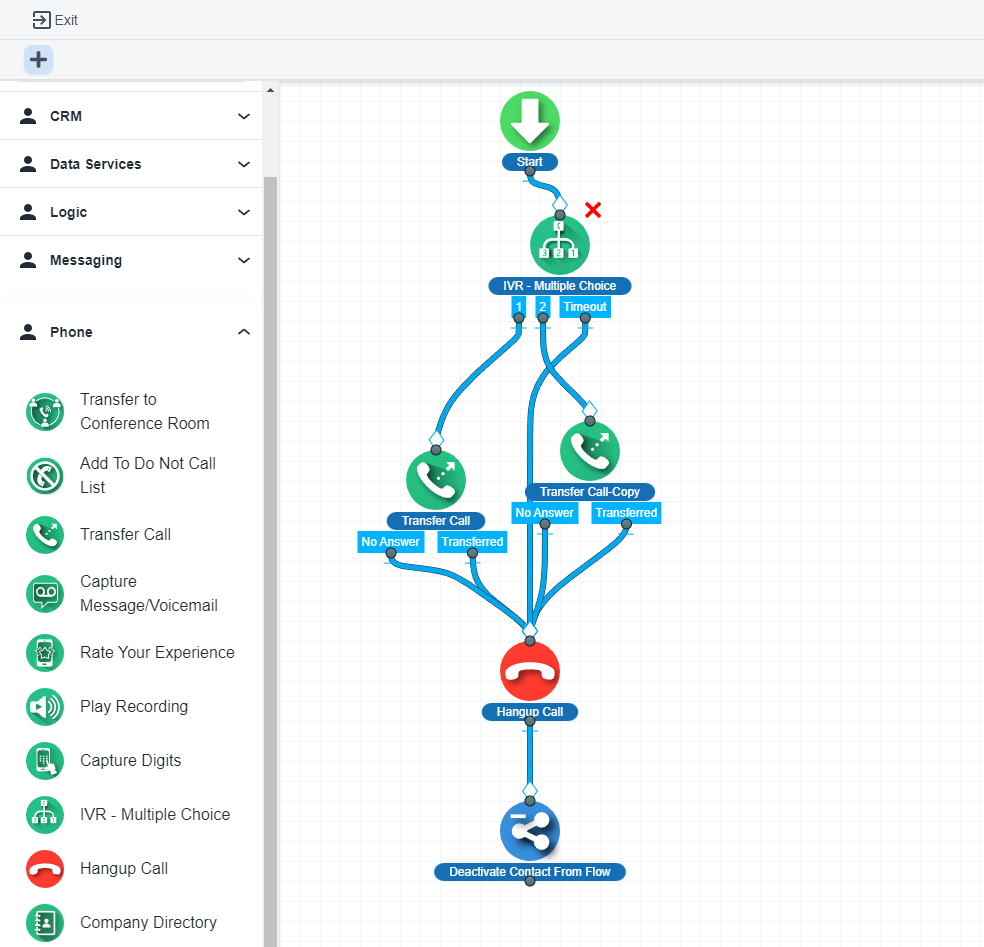 Please, drag the ‘Transfer Call’ step to the flow builder and add it under the IVR step