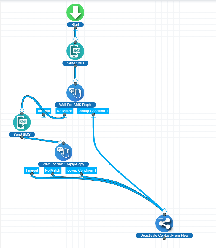 As per our requirement, repeat the ‘Send SMS’ and ‘Wait for SMS Reply’ steps