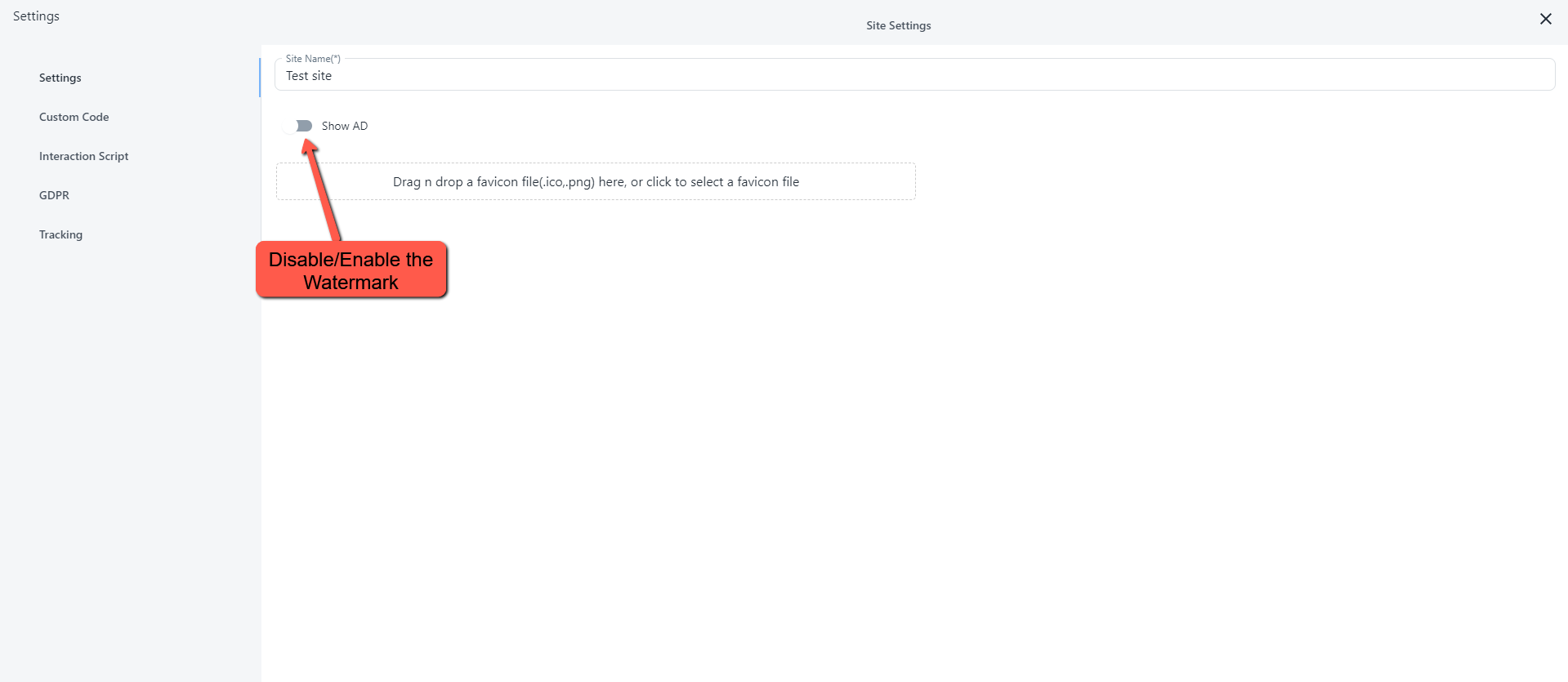 Select the websites from the navigation bar, go to Site Designs and to My Design Projects, select any of the site that you want to disable/enable the watermark from.