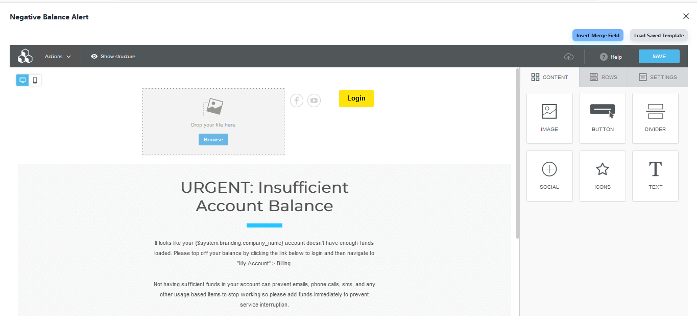 The existing template is open for you, here you can edit this email as per you want. Also, the system will allow loading your saved template here.