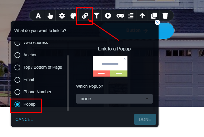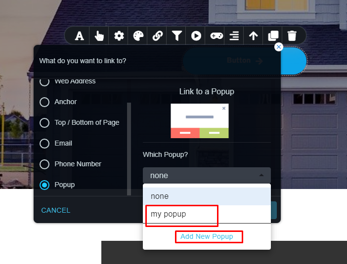 Add a button to link a popup to a button
