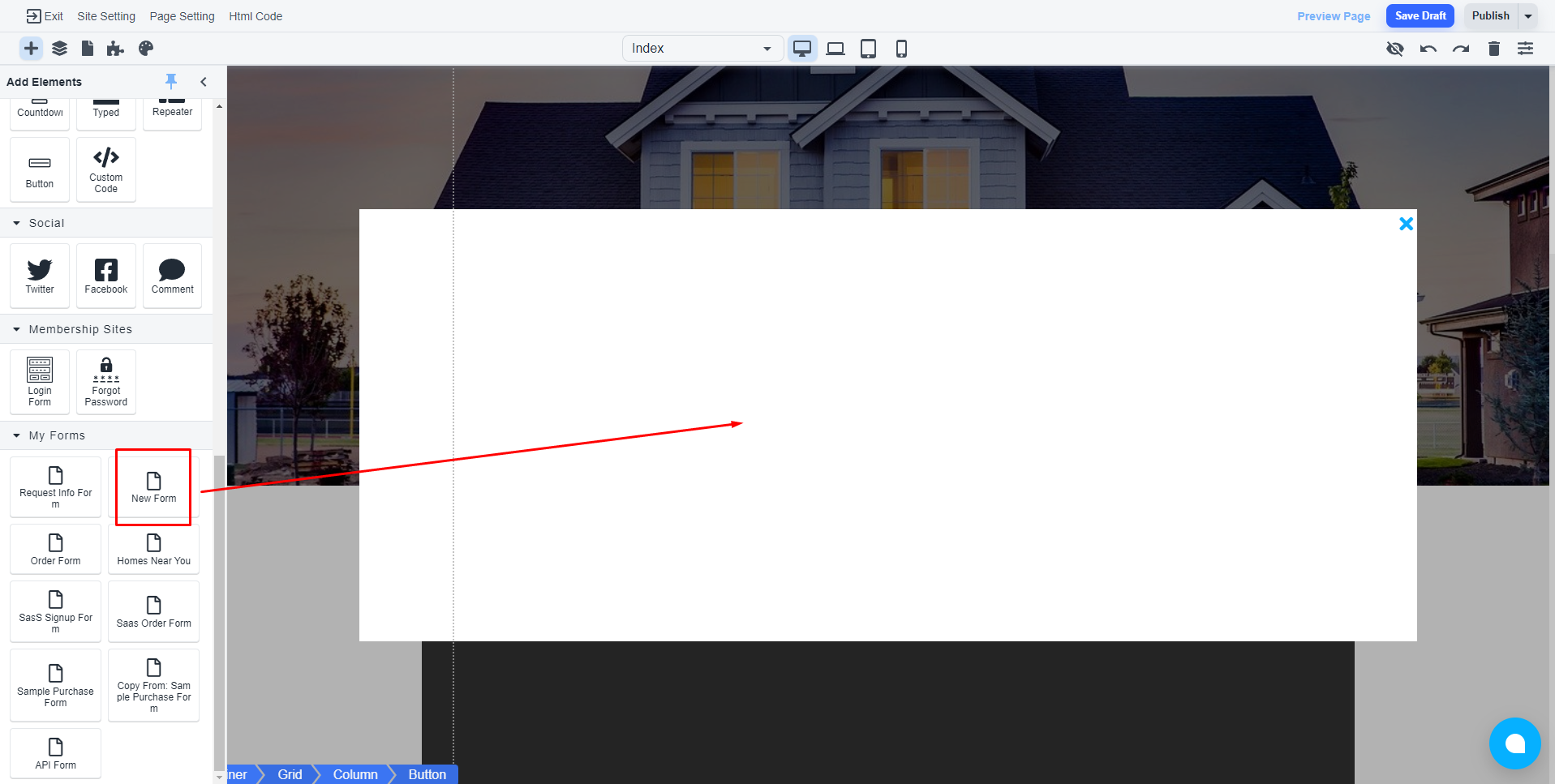 Later you only need to drag the concerned form to the canvas.