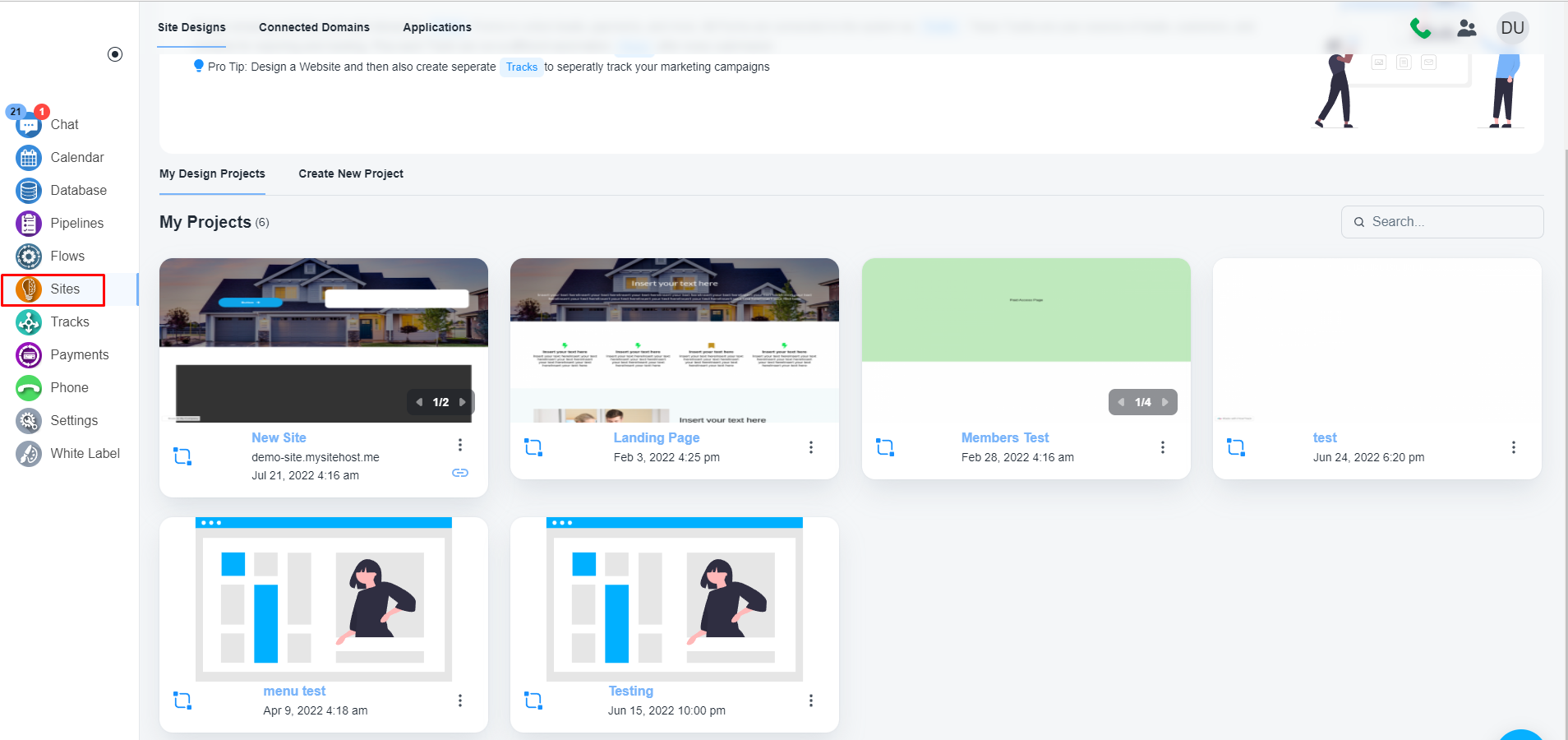 Please, navigate to the ‘Sites’ on the left menu bar and open you project.