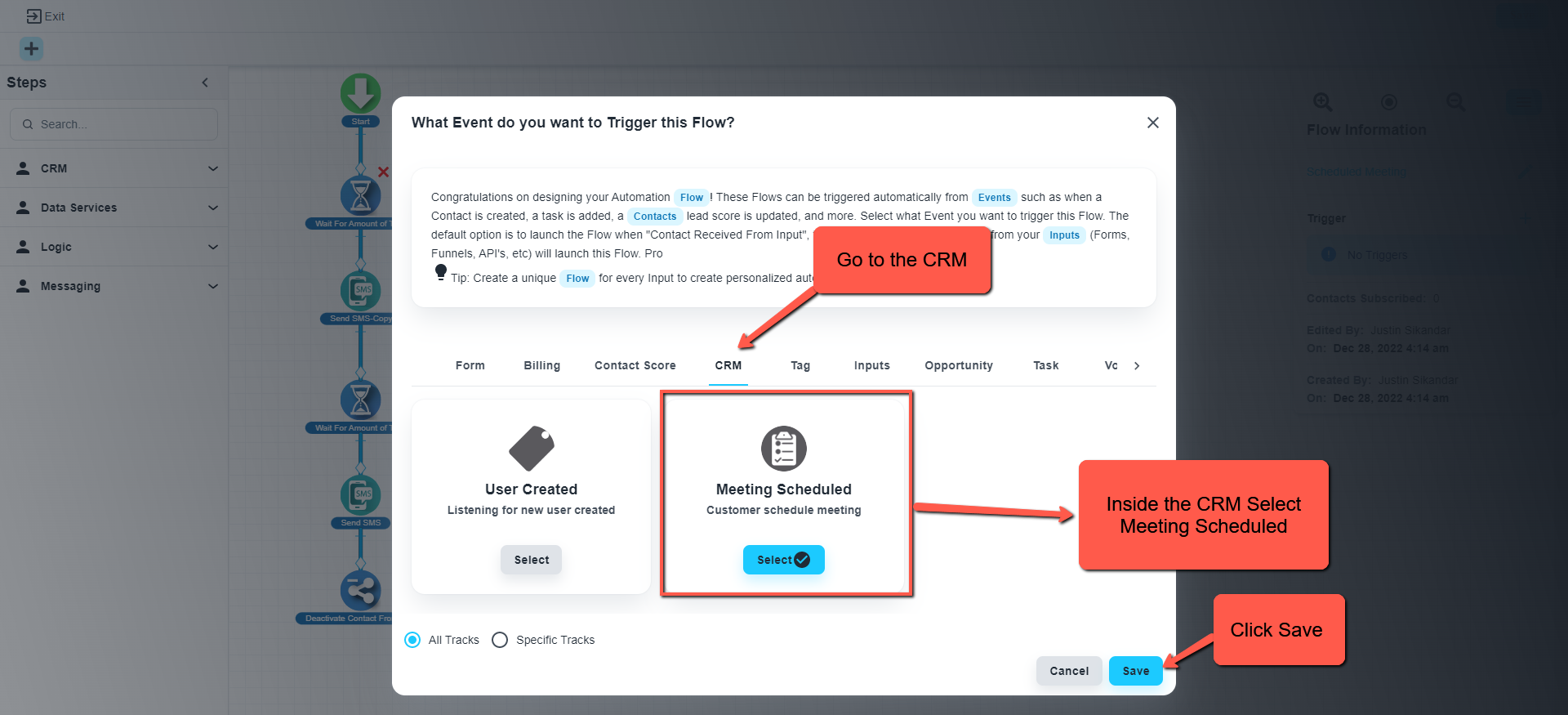 The Trigger Meeting Scheduled is very important for the whole process to work which you can find in the CRM