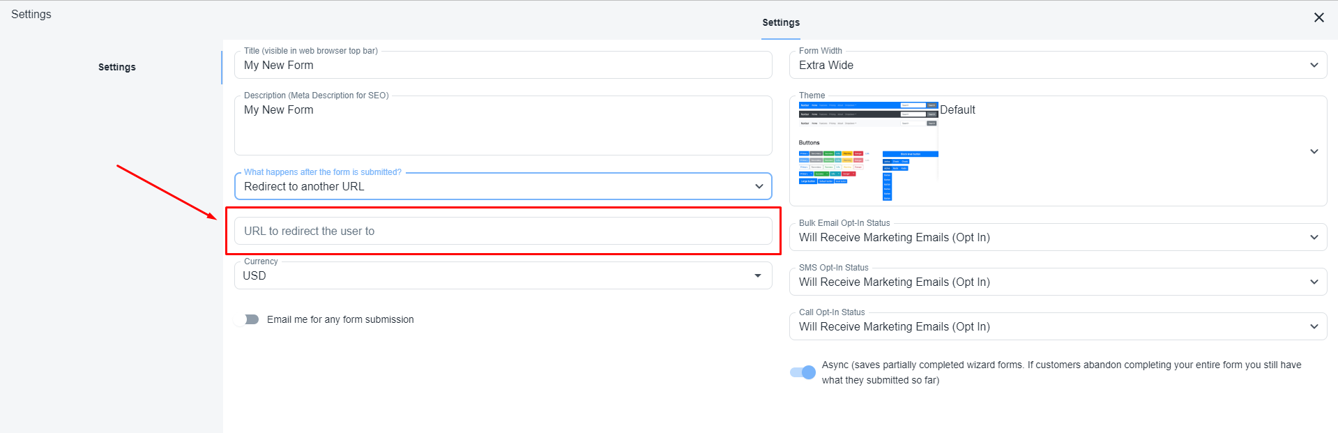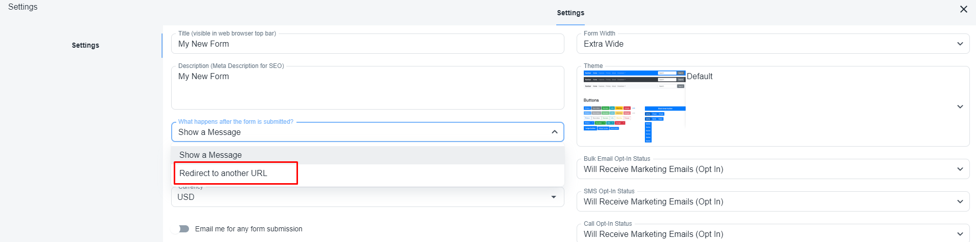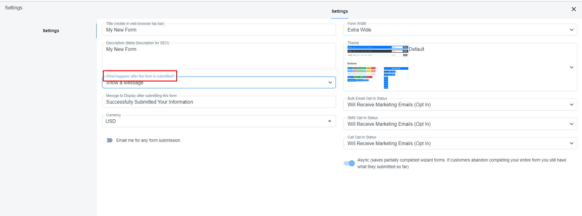 Select the dropdown ‘What happens after the form is submitted?’