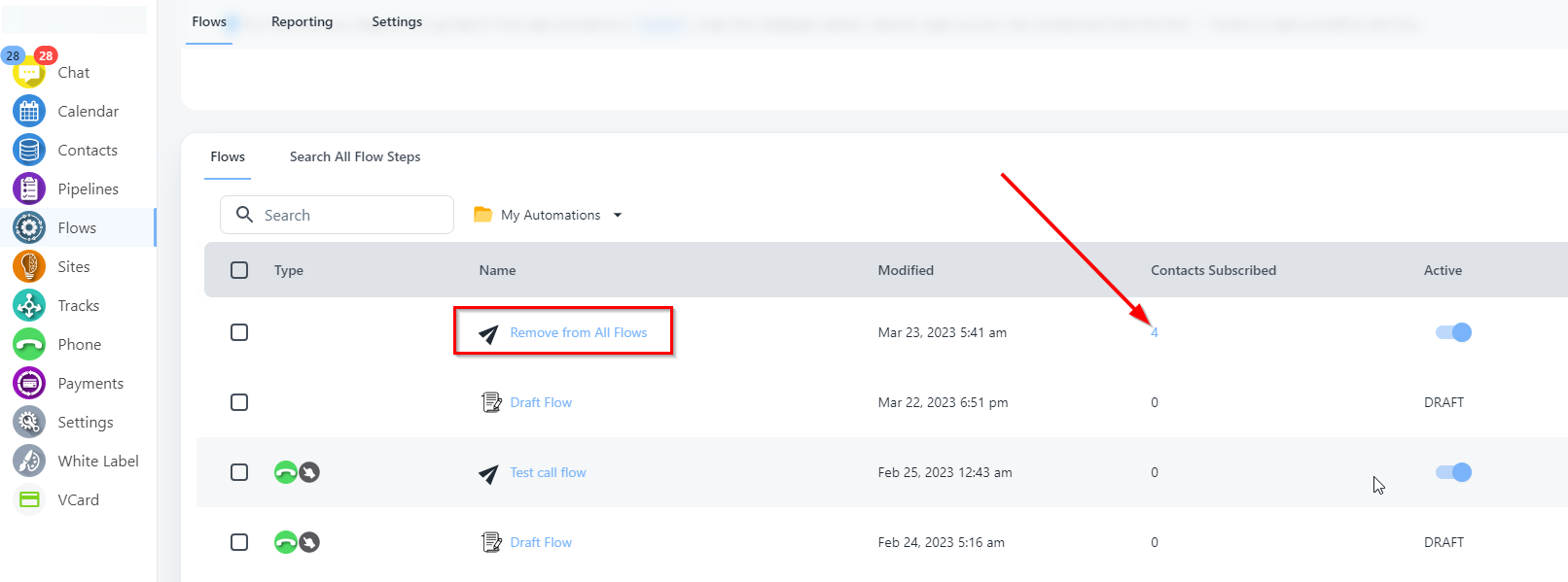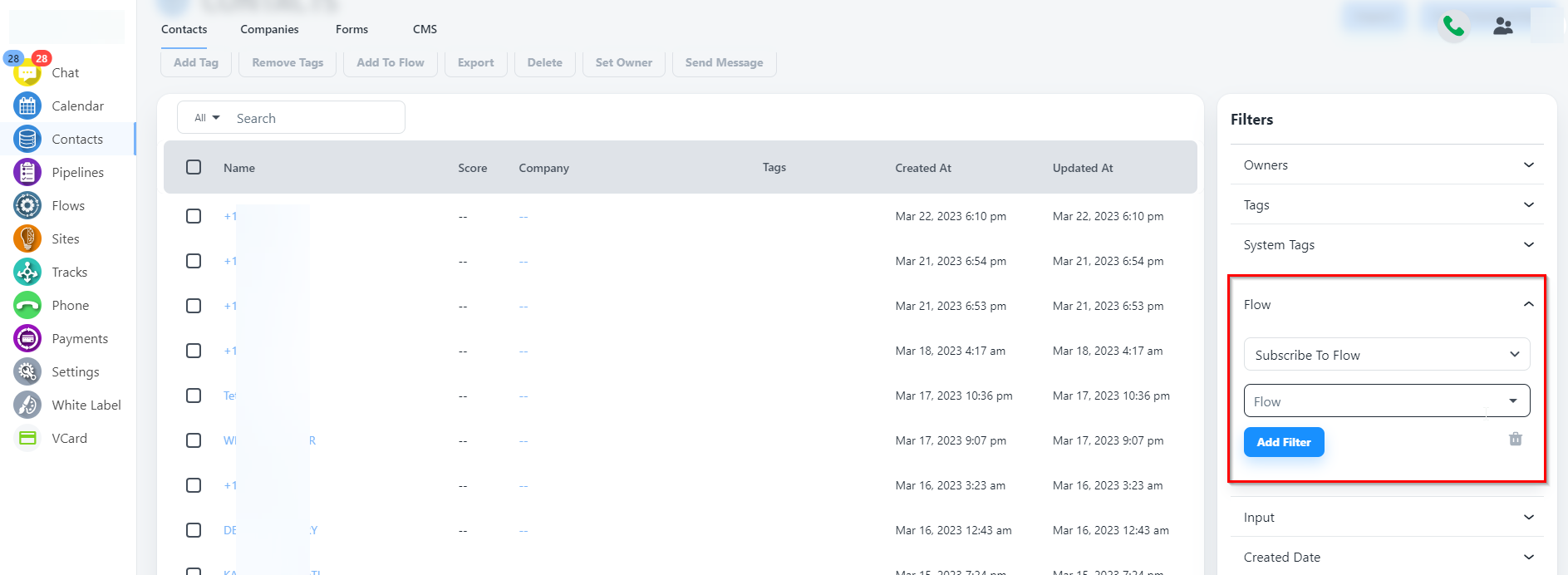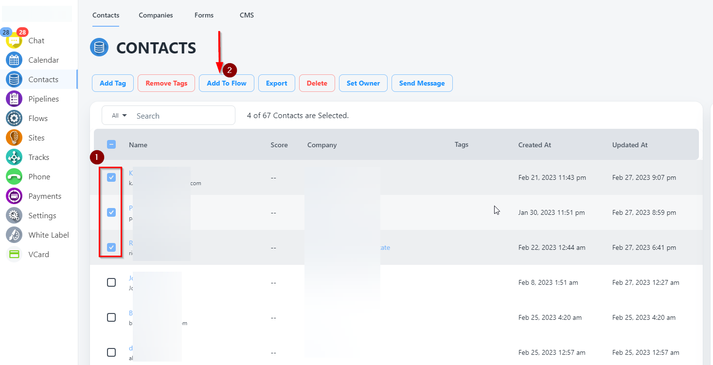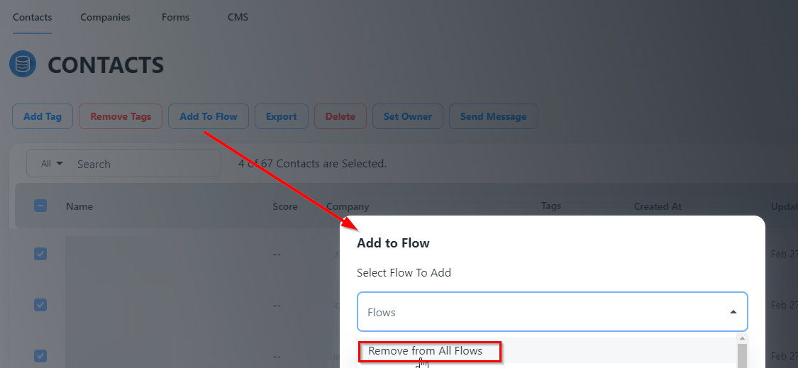 Step 2: Now go to Contacts and select all contacts which you would like to remove from Flows.