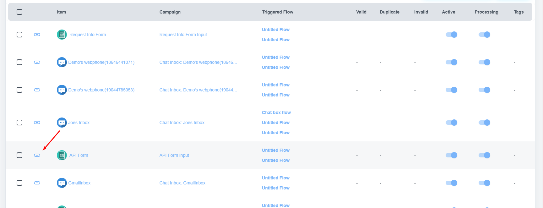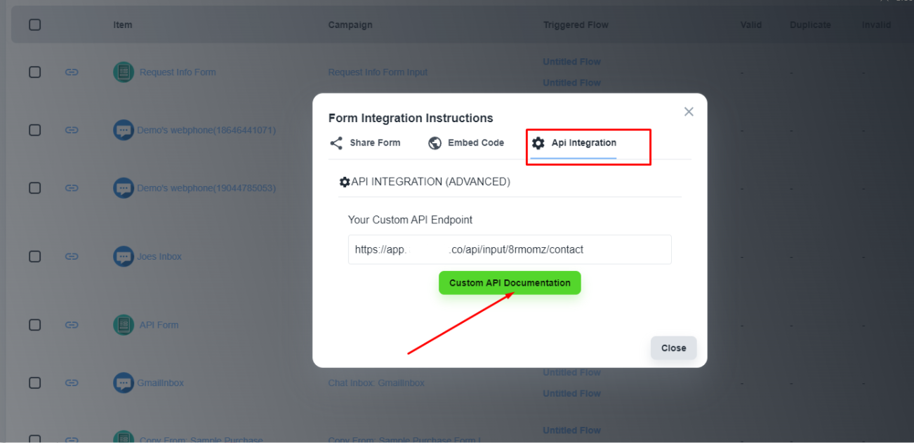 Please, click on the link icon and you will have the integration guideline under the ‘API Integration’ tab