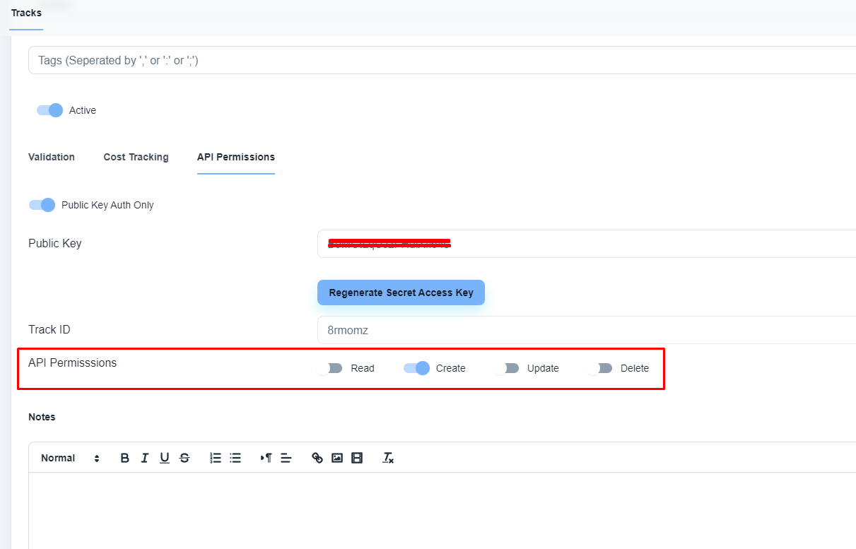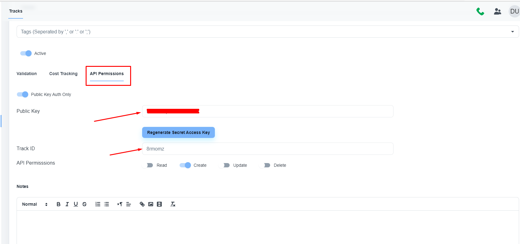 You will have the API key and track ID on the' Edit Track' page. You will get all these information under the ‘API Permission’ tab