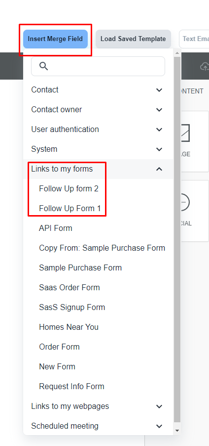 Here, you can see all the existing forms and you can add ‘Follow Up Form 2’ to the email body
