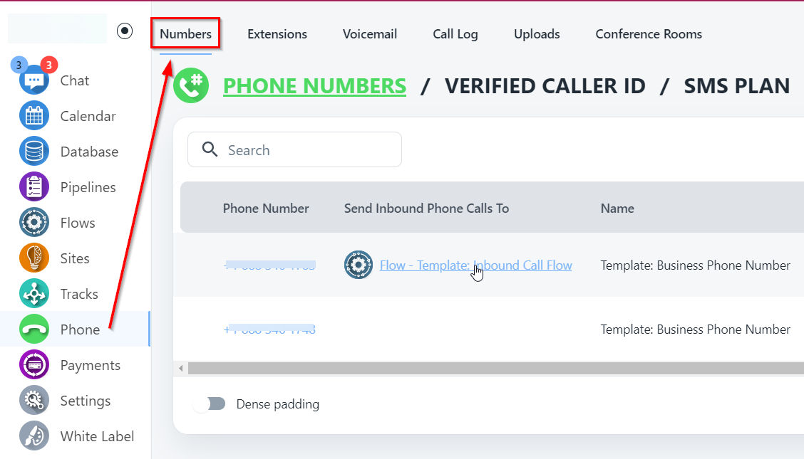 - Click on the Phone number which you want to send to the Flow