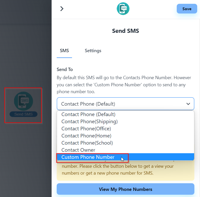 Sending SMS to custom or static phone number is required when you want to add static number to get specific SMS when flow triggers. You can set custom number for different scenarios depending on your requirements. However, system allows you to get dynamic number from flow to send SMS every time.