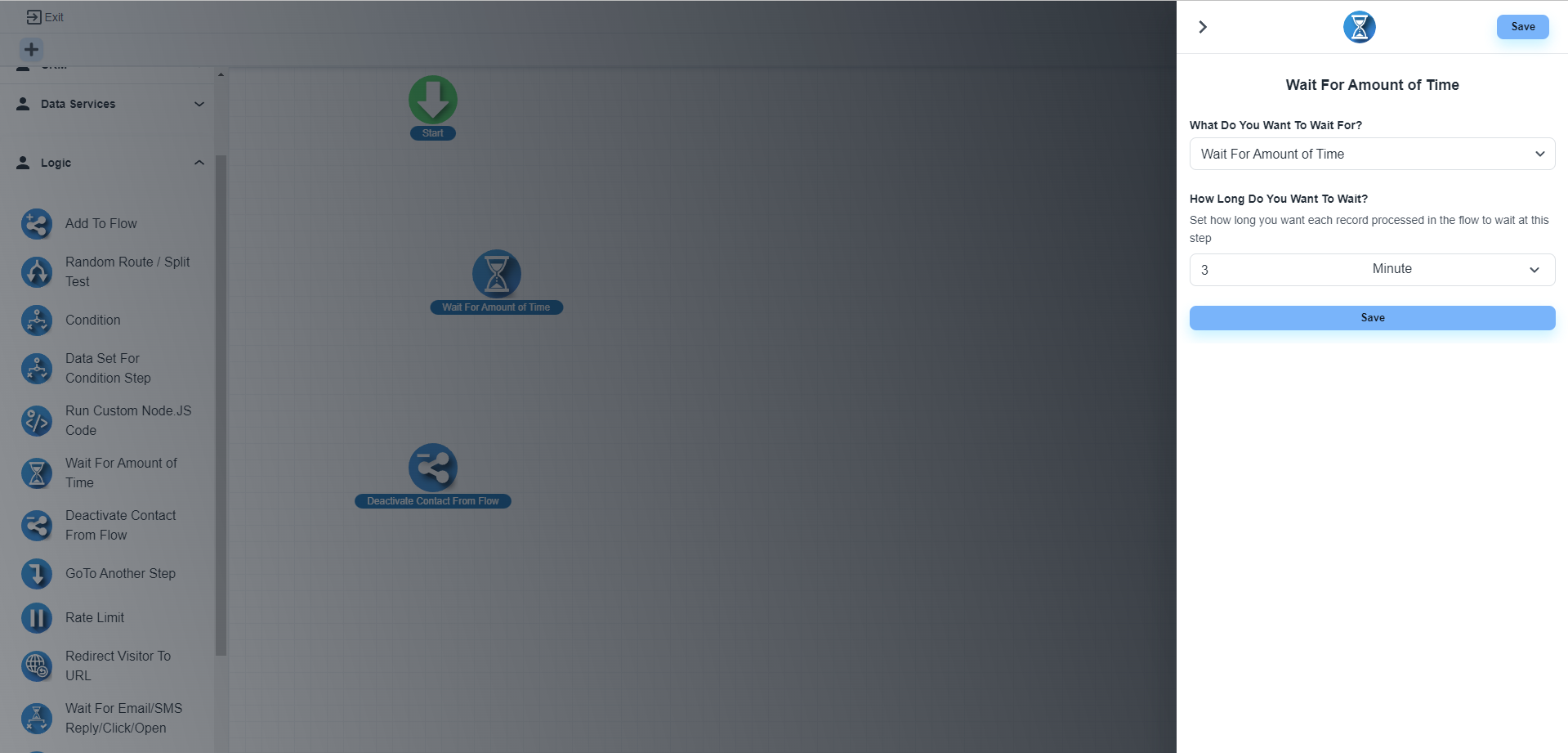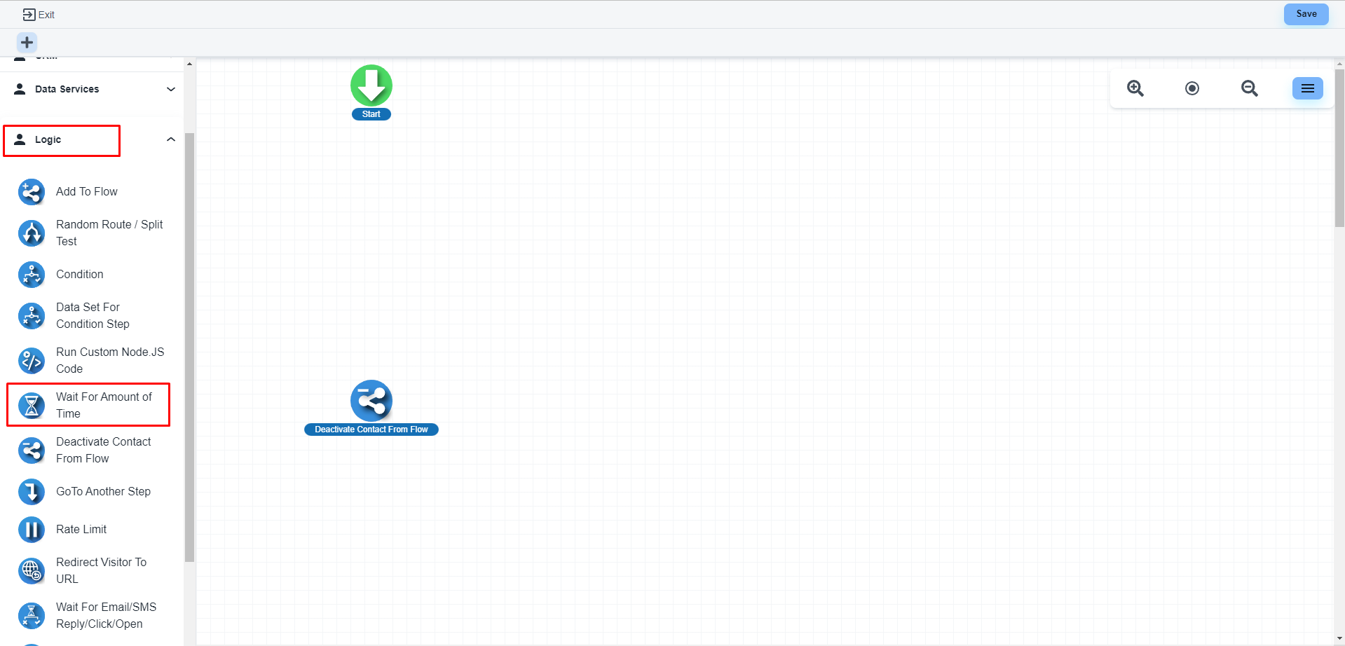 Under the ‘Logic’ section, you will get the ‘Wait For Amount of Time’ step. This step allows you to create a time gap in the drip campaign.