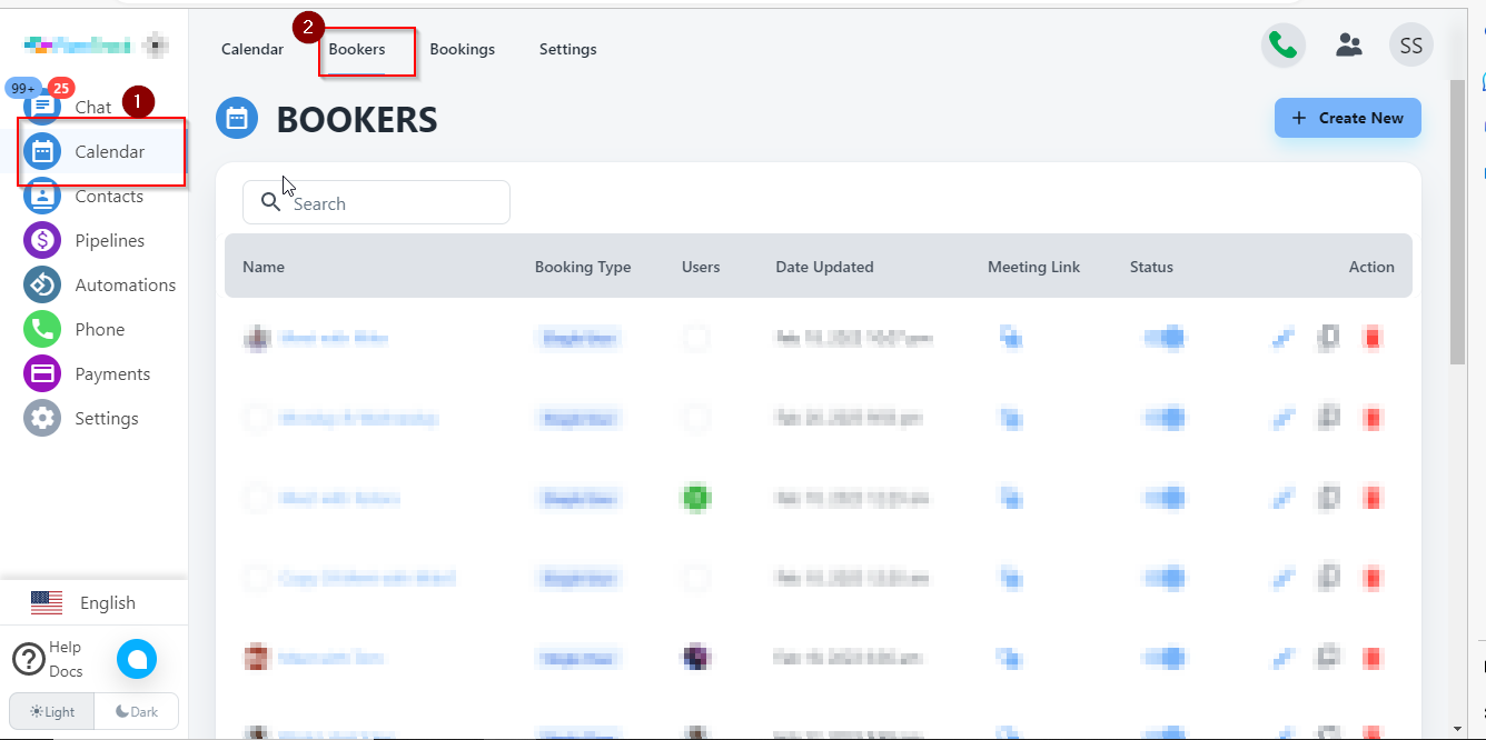 - First, you need to click on Calendar from the left bar menu then click on Booker.