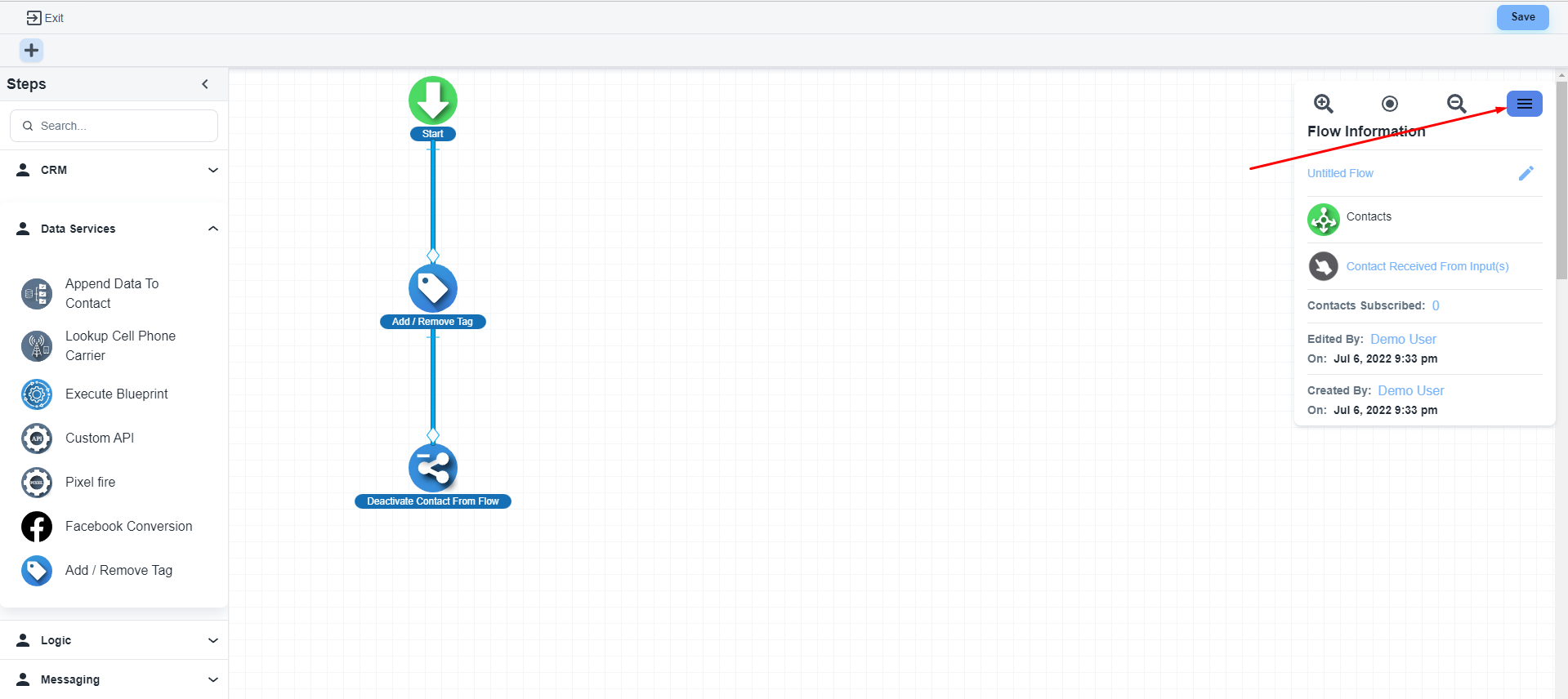 Please, click on the hamburger icon on the flow builder.