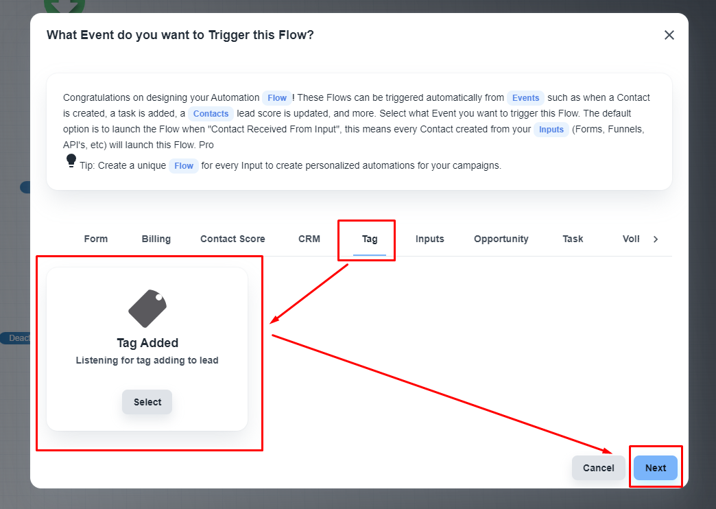 Here you will get the list of all the existing inputs. Please, click on the ‘Tag’ tab and select the ‘Tag Added’ option