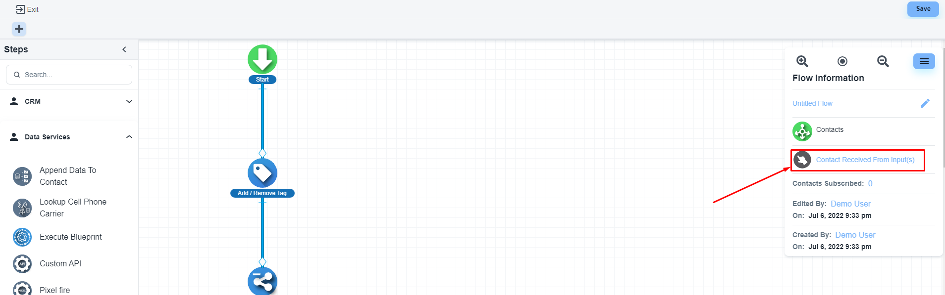 Drag and drop to build flow