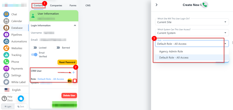 - After selecting your sub-account ,scroll down here you find an option which is about CRM role ,click the + icon and you can easily defined your sub-account role from here.