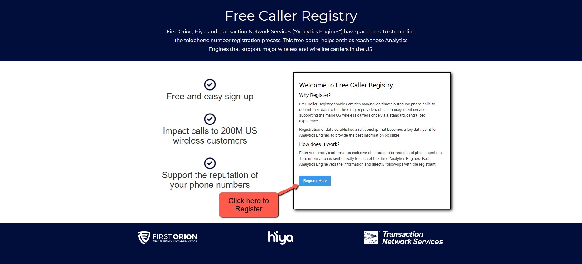 Once you register and submit the required information via the portal, the Analytics Engines will vet it and follow up with you directly. If your request is approved, it may take a few days for changes to your phone number(s) to go into effect. The registration process doesn’t guarantee that your calls won’t be blocked or labeled in the future, however, registration is intended to greatly reduce the risk of blocking or labeling.
