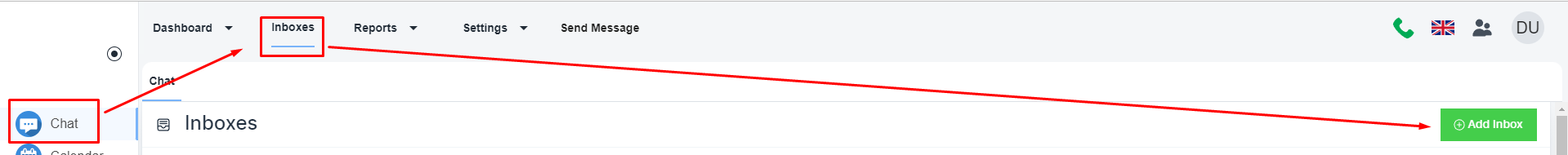 Please, navigate to the ‘Chat’ icon on the left menu bar. Once the page is loaded, click on the e ’Inbox’ menu on the top menu bar.