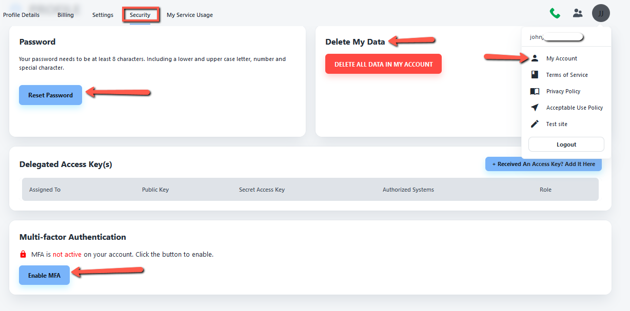 > Click on Enable MFA, then your multi-factor authentication is enabled on your account.