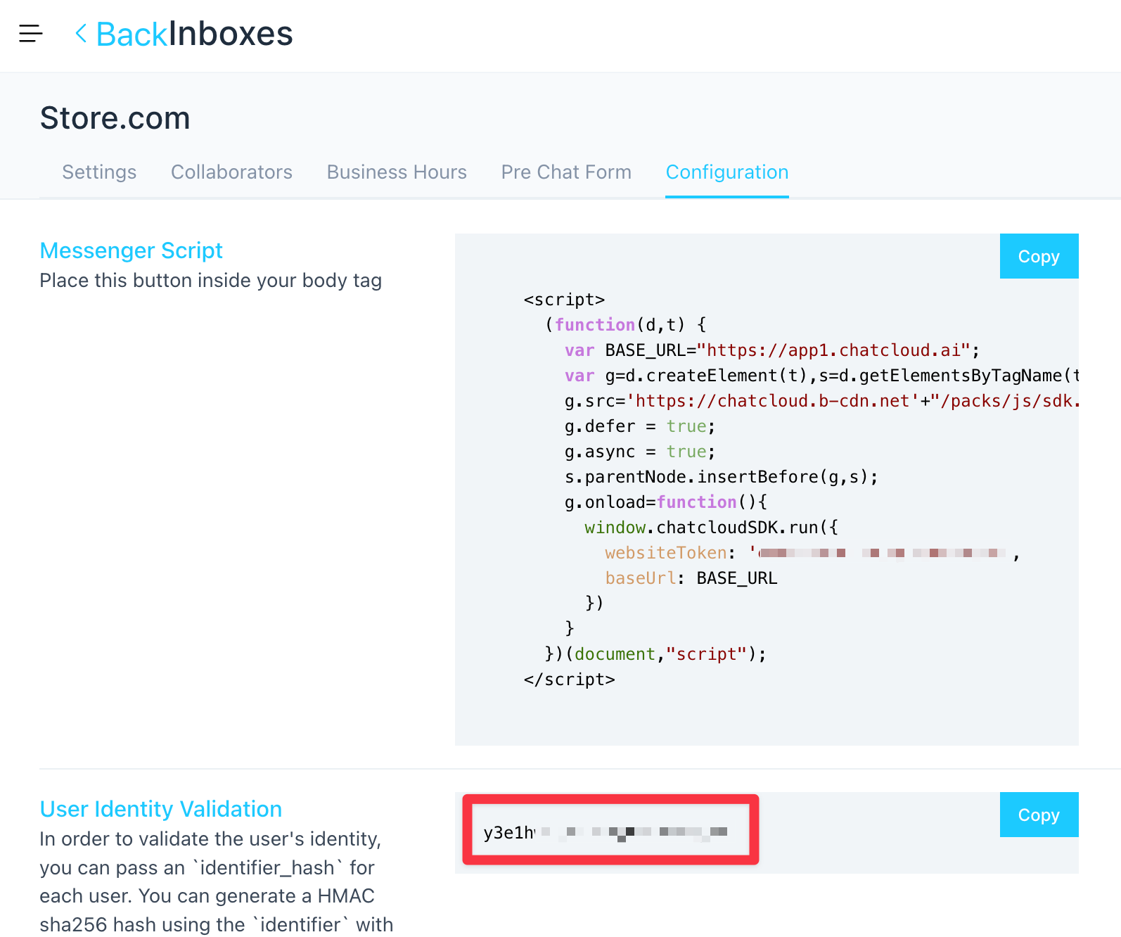 Identity Verification ensures conversations between you and your Users are kept private, and that one person can't impersonate another. This is done by passing an secure identifier of your Contact/Lead/Customer.