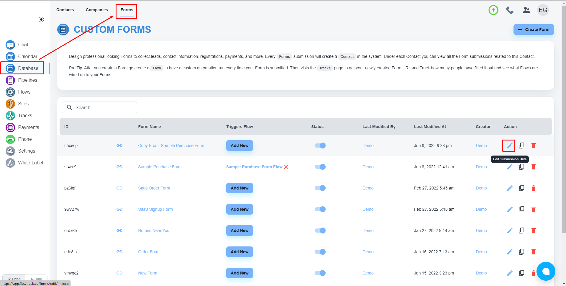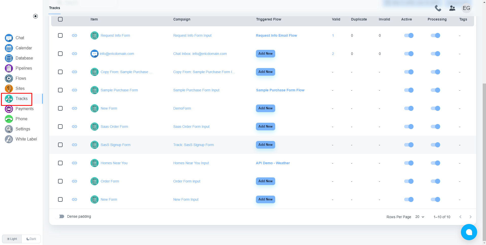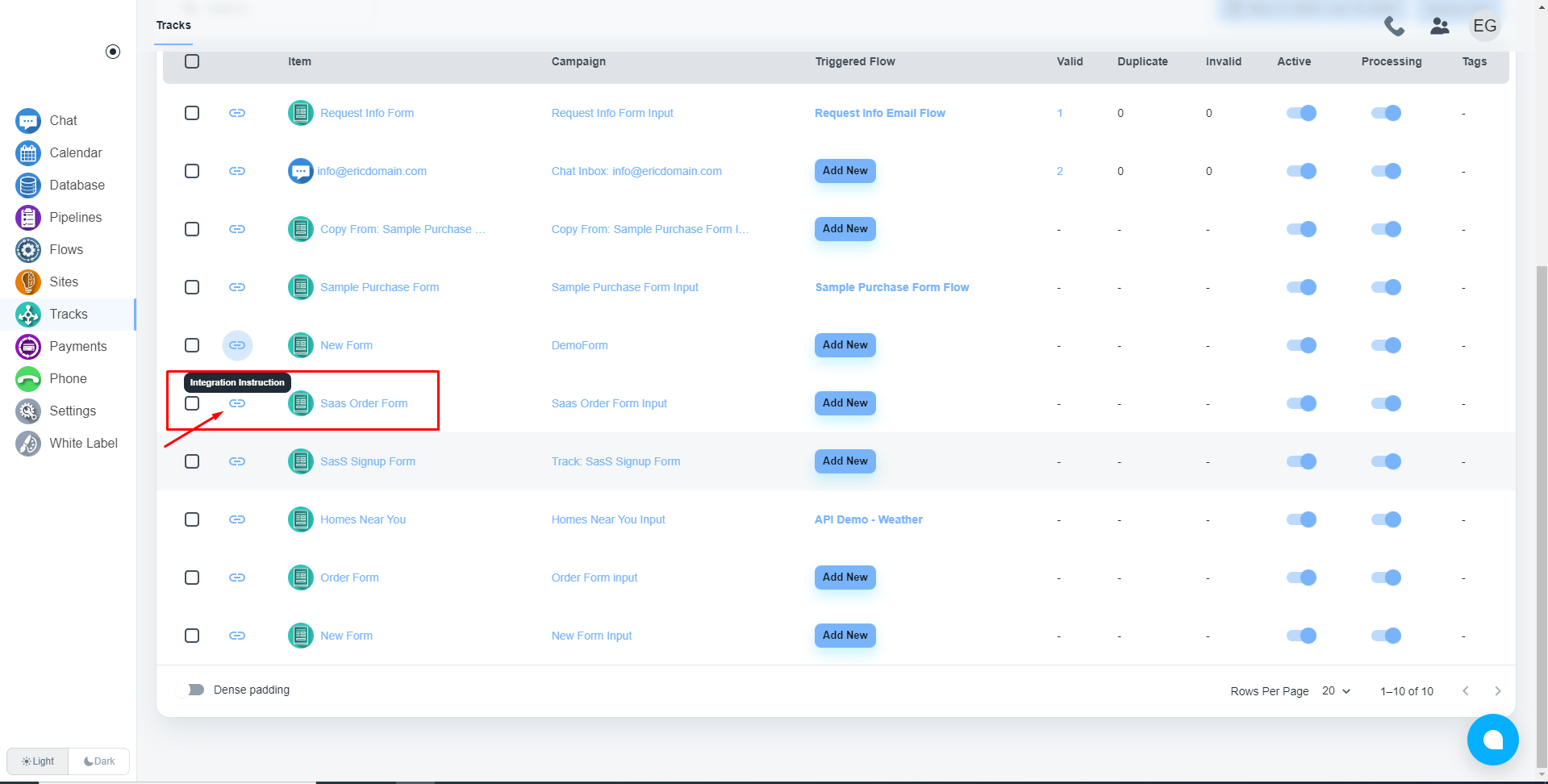 On the tacks list page, you will get all the available tacks with forms. Each track item has a link icon on the left side of the title.