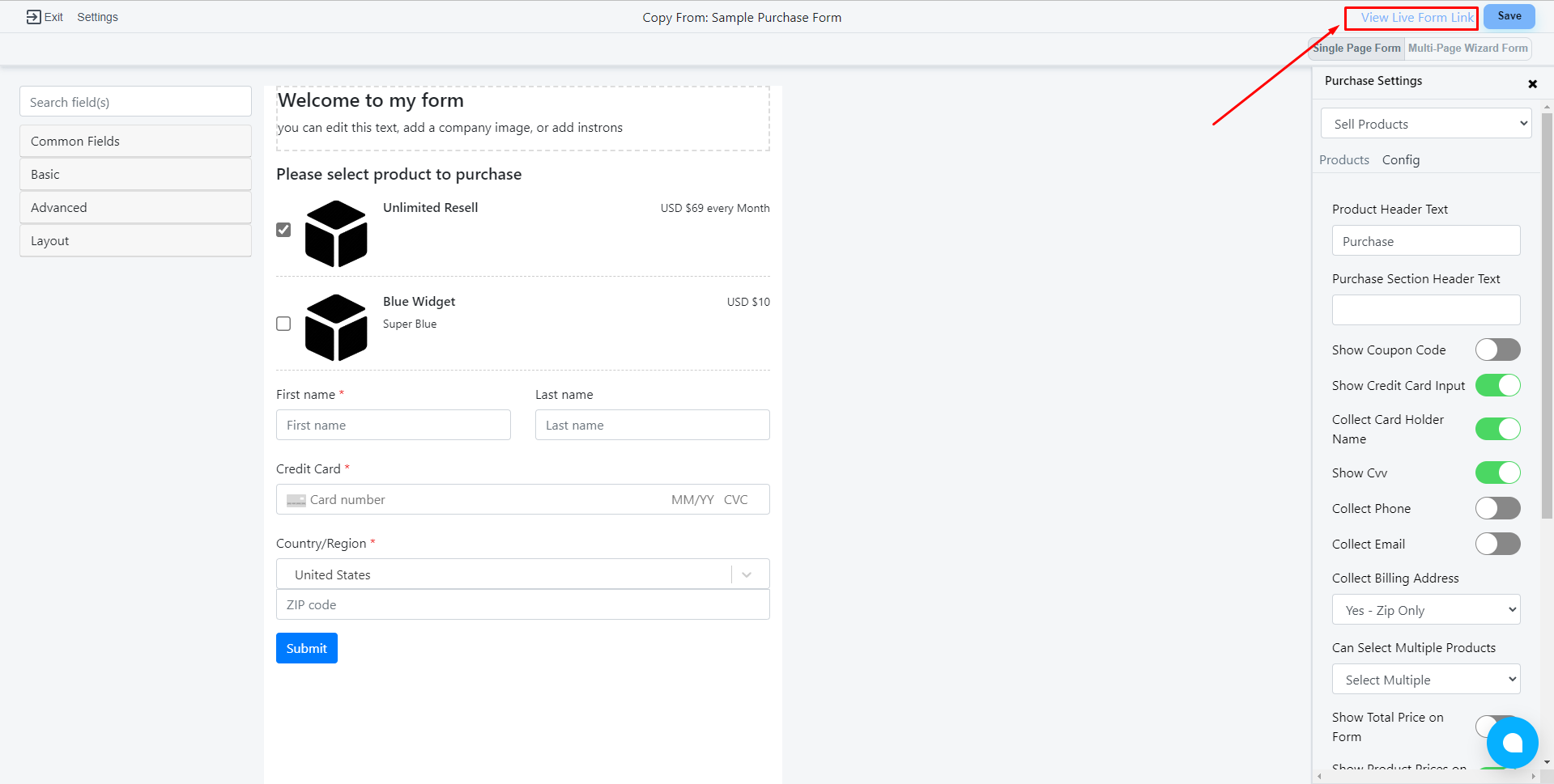 After opening the form in the form builder, on the top right corner, you will get the live link of the form